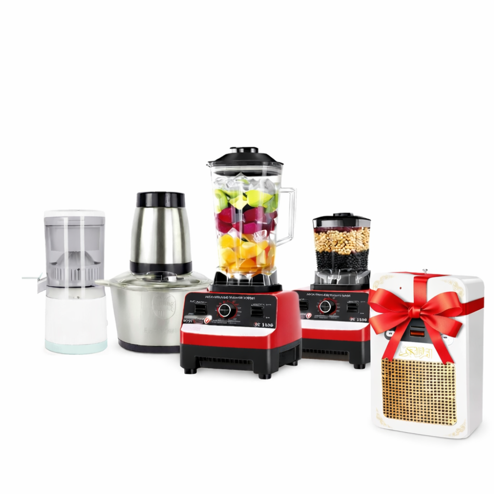 اجعلي مطبخك متكاملًا مع طقم اجهزة المطبخ الكهربائية العصرية الذي يجمع بين الأداء العالي والتصميم الأنيق في جهاز واحد. مثالي لكل سيدة تبحث عن الراحة والسرعة في تحضير المأكولات والمشروبات، ويأتي مع عصارة مجانية لتكتمل التجربة.