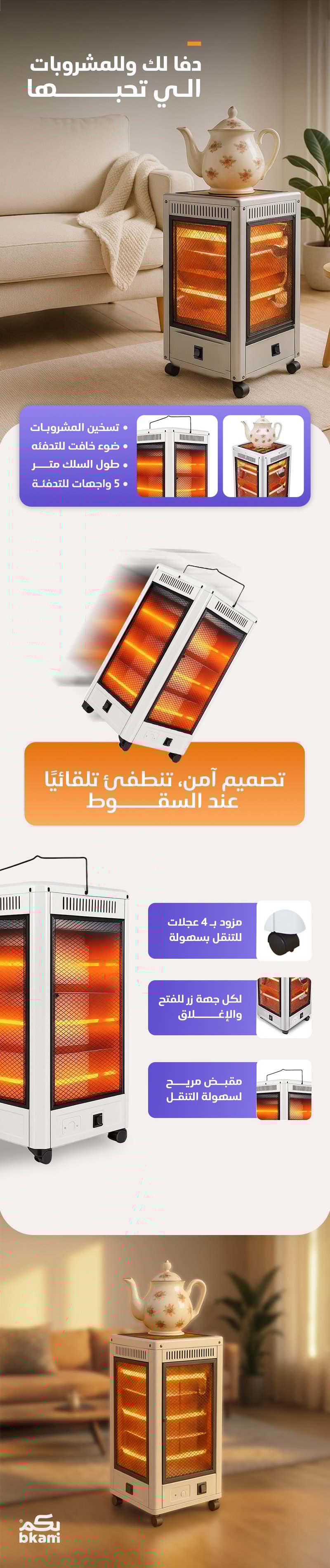 تصميم مبتكر يجمع بين دفاية فعالة وسخانة علوية للمشروبات.