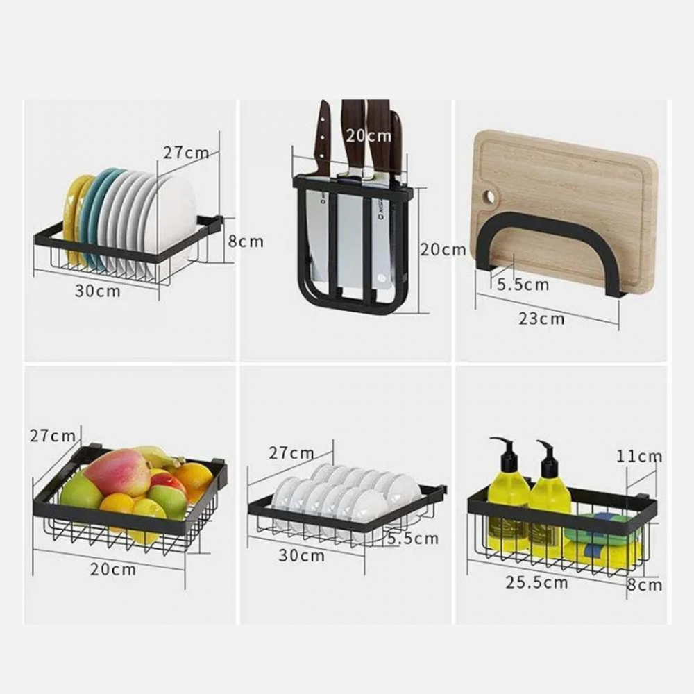 ليس فقط مخصص لأدوات المطبخ، بل أيضا لتجفيف الفواكه والخضار، وكذلك لتعليق المناشف، وأيضا لصف كتاب الطبخ المفضل لديك، ولصف التوابل بجانب بعضها، أي أنه رف مثالي متعدد الاستخدامات.