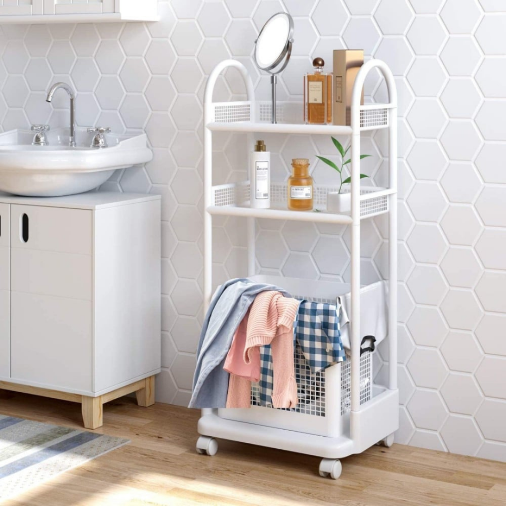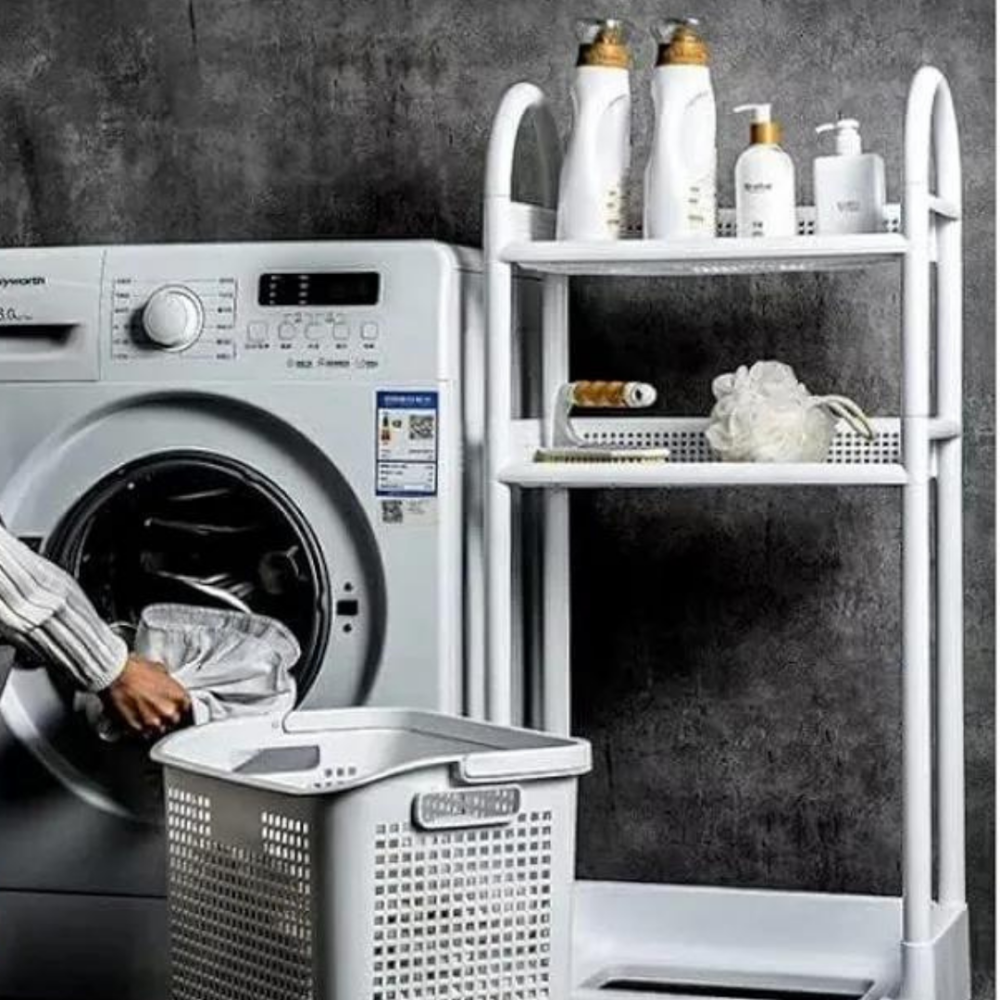 ستاند غسيل متحركة بثلاثة طبقات، مساحة تخزينية وتنظيمية وجمالية تناسب منزلك الأنيق.