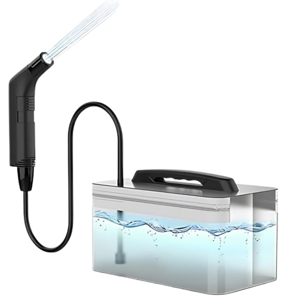 شطاف محمول عملي وخفيف بتدفق مياه سلس وتحكم مزدوج، مثالي للنظافة أثناء السفر أو التخييم