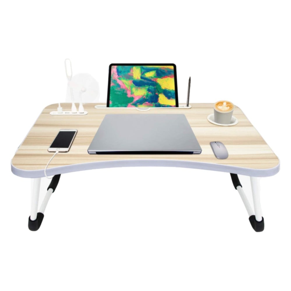 متعددة الوظائف: سطح للمذاكرة + درج أقلام + حامل كوب + فتحة لتثبيت الجوال + 4 مداخل USB.
