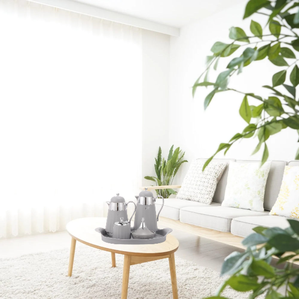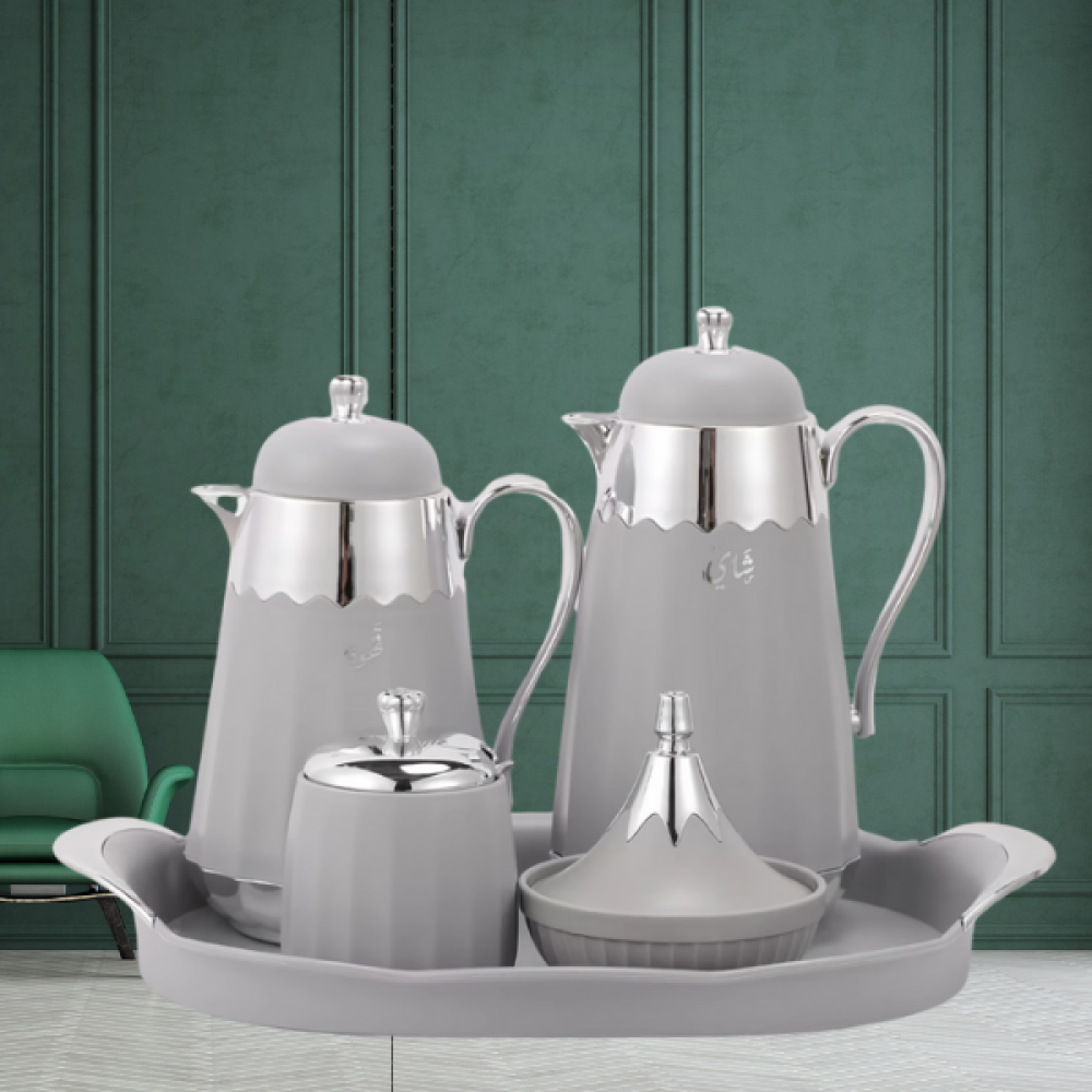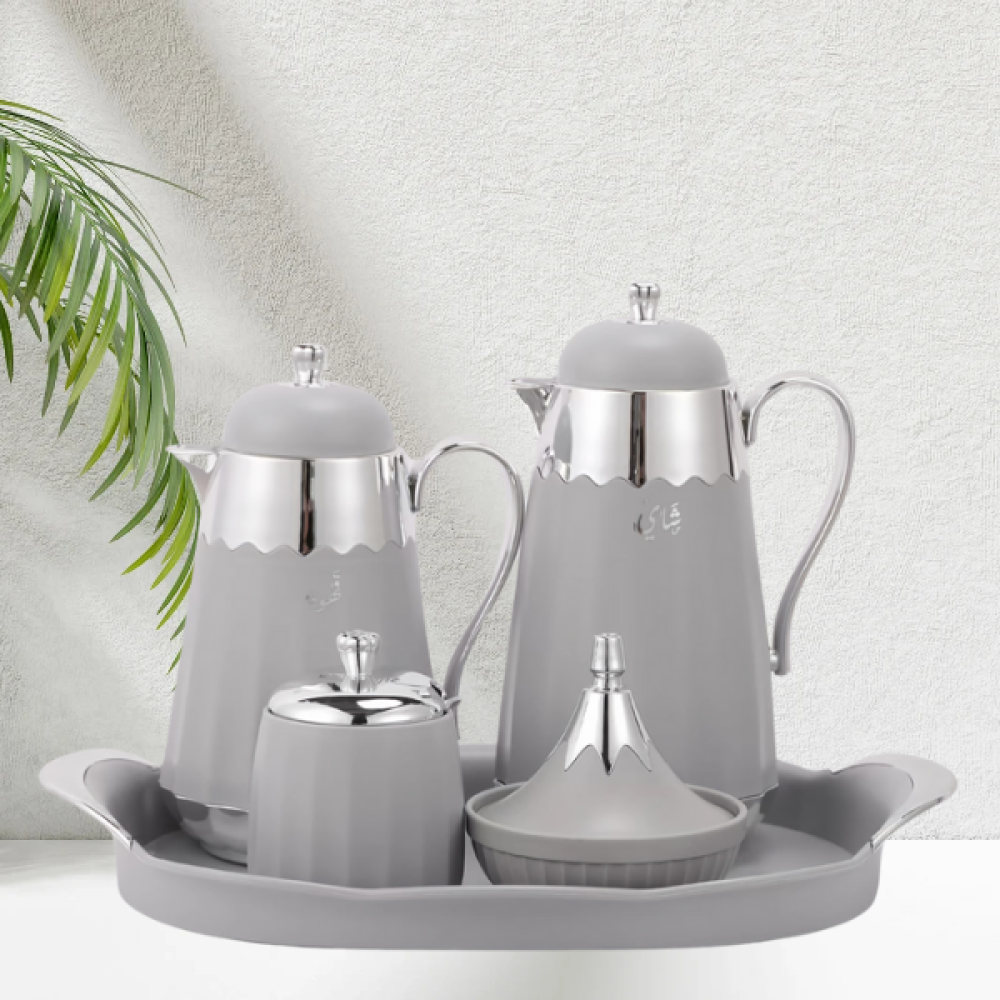 عندما تجتمع الفخامة مع الجودة العالية، يصبح للمذاق حكاية، طقم الترامس بست قطع خيارك المثالي لتقديم الشاي والقهوة.