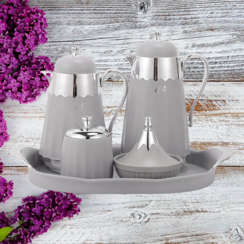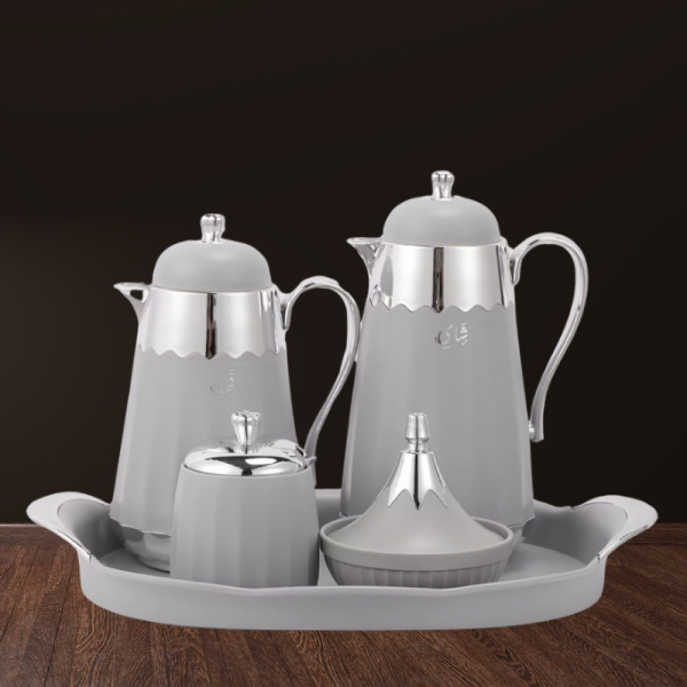 طقم ترامس فضي 6 قطع للشاي والقهوة.