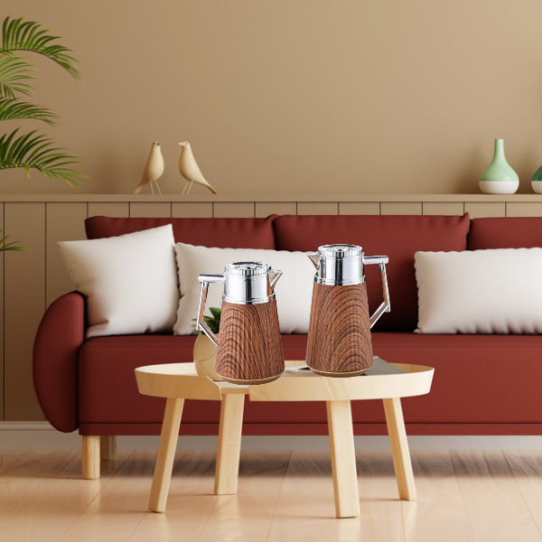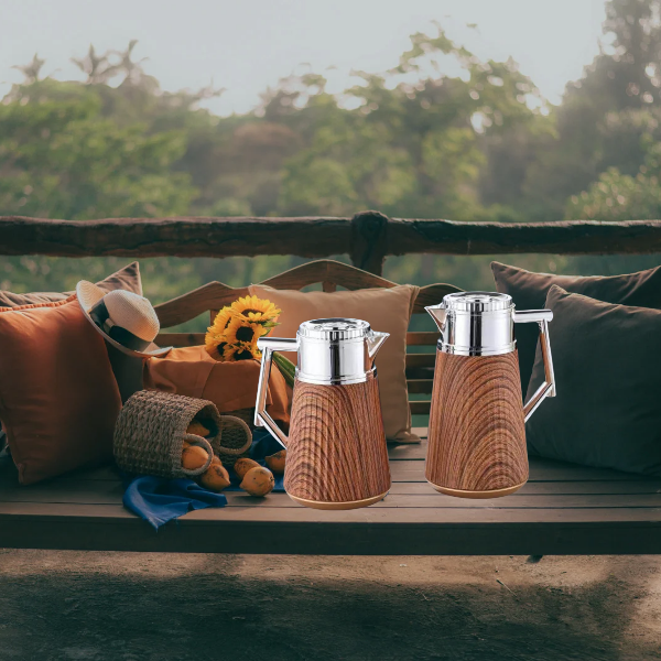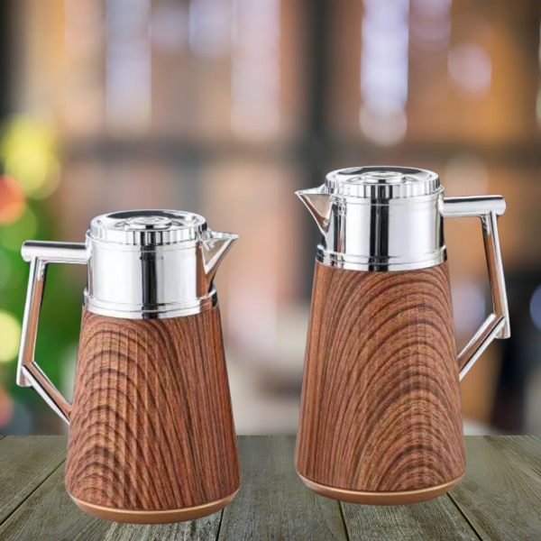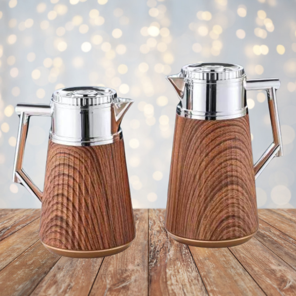 اطلبي الآن طقم ترمس فضي خشبي للشاي والقهوة من متجر بكم.