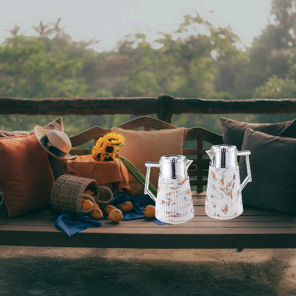 اطلبي الآن طقم ترمس فضي رخامي للشاي والقهوة من متجر بكم.