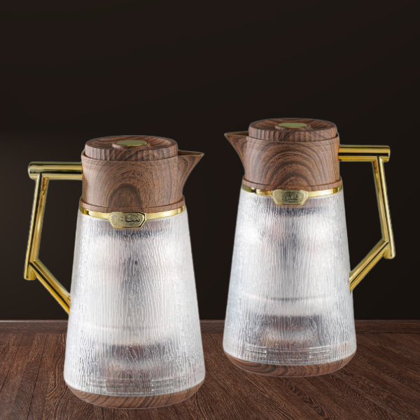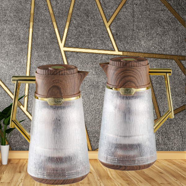 طقم ترمس شفاف خشبي ذهبي للشاي والقهوة، ماركة بيتروس الأصلية، عندما تجتمع الفخامة مع الجودة العالية، يصبح للمذاق حكاية.