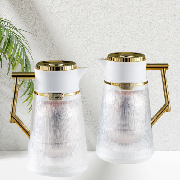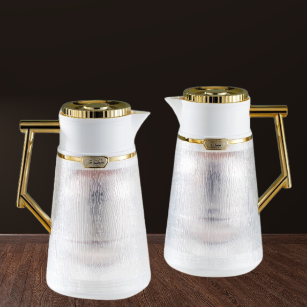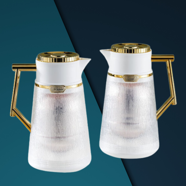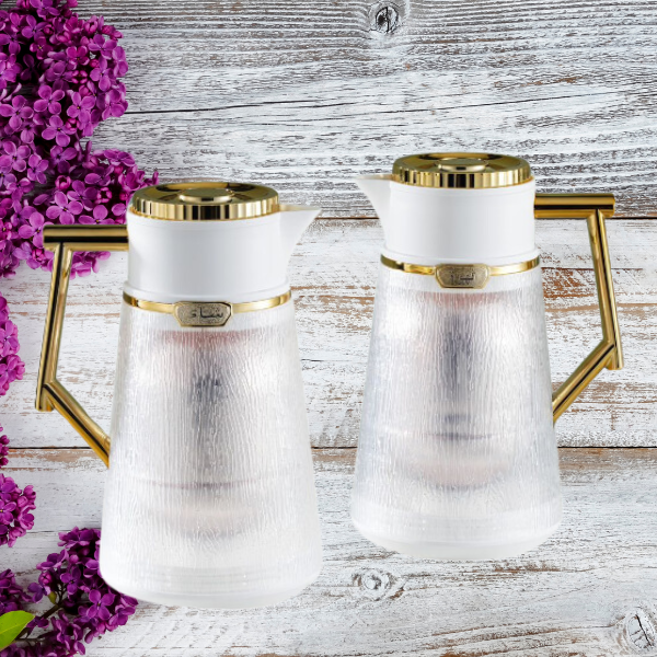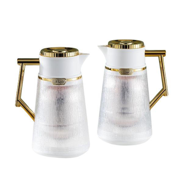 طقم ترمس شفاف أبيض نحاسي للشاي والقهوة، ماركة بيتروس الأصلية، عندما تجتمع الفخامة مع الجودة العالية، يصبح للمذاق حكاية.