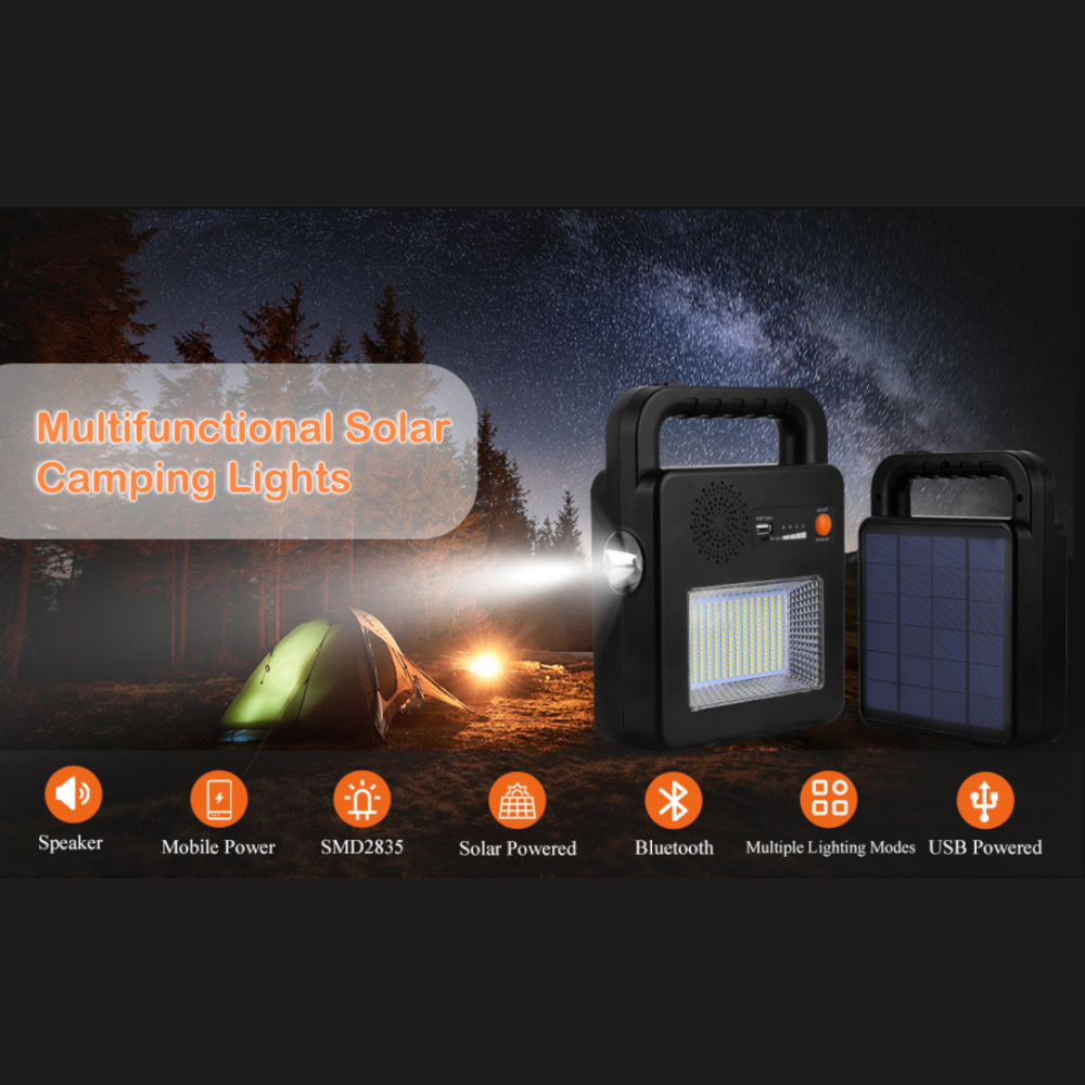 كشاف تخييم بالطاقة الشمسية وبمدخل USB، مزود بمكبر صوت مدمج نقي، الخيار القوي في الهواء الطلق.