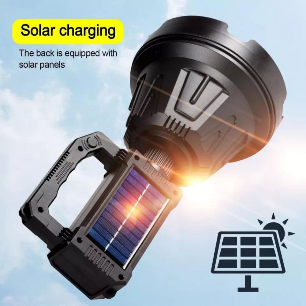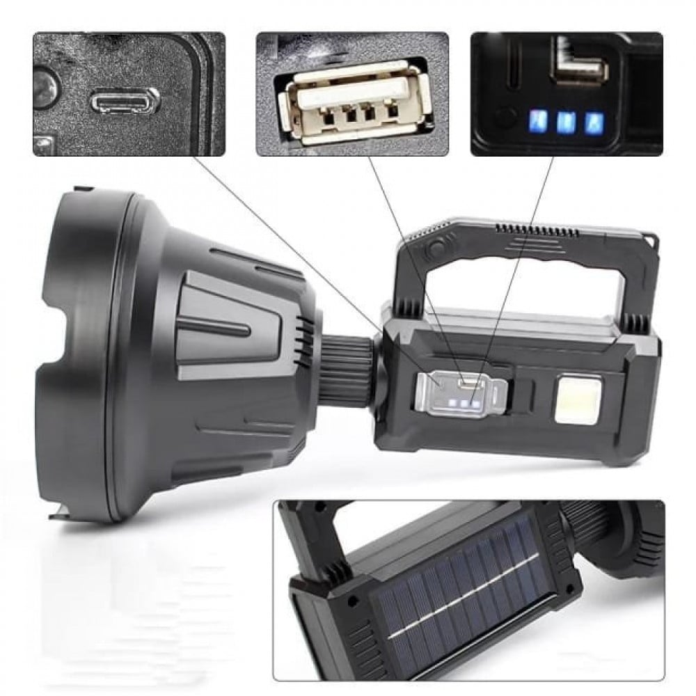 مزود بلوح شمسي، قابل لإعادة الشحن بالطاقة الشمسية، وبكيبل USB.