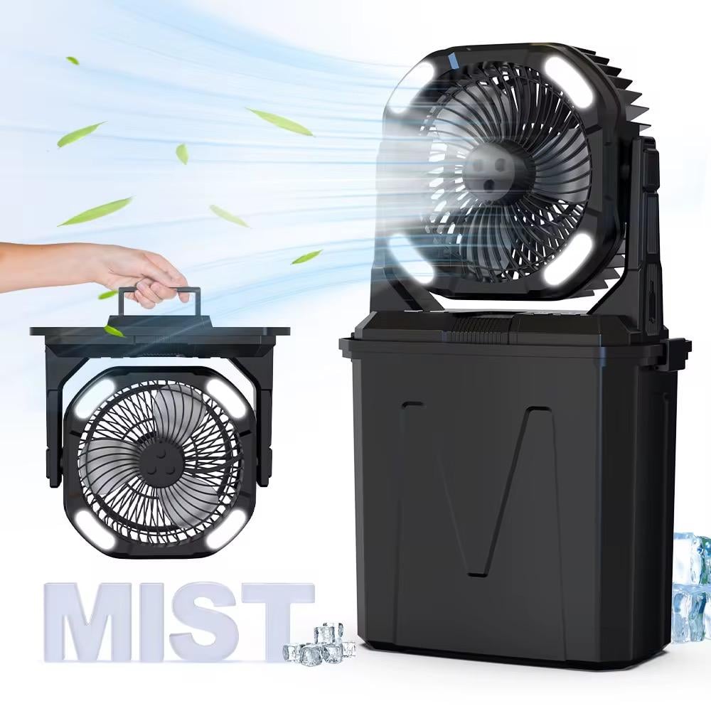 استمتع بالانتعاش في أي وقت ومع أي مكان مع المروحة المحمولة المزودة برشاش ماء مدمج. تصميم عصري يجمع بين التهوية القوية ورذاذ الماء المنعش مع إضاءة LED، لتجربة مريحة سواء في المنزل أو أثناء الرحلات وفي الأجواء الحارة.