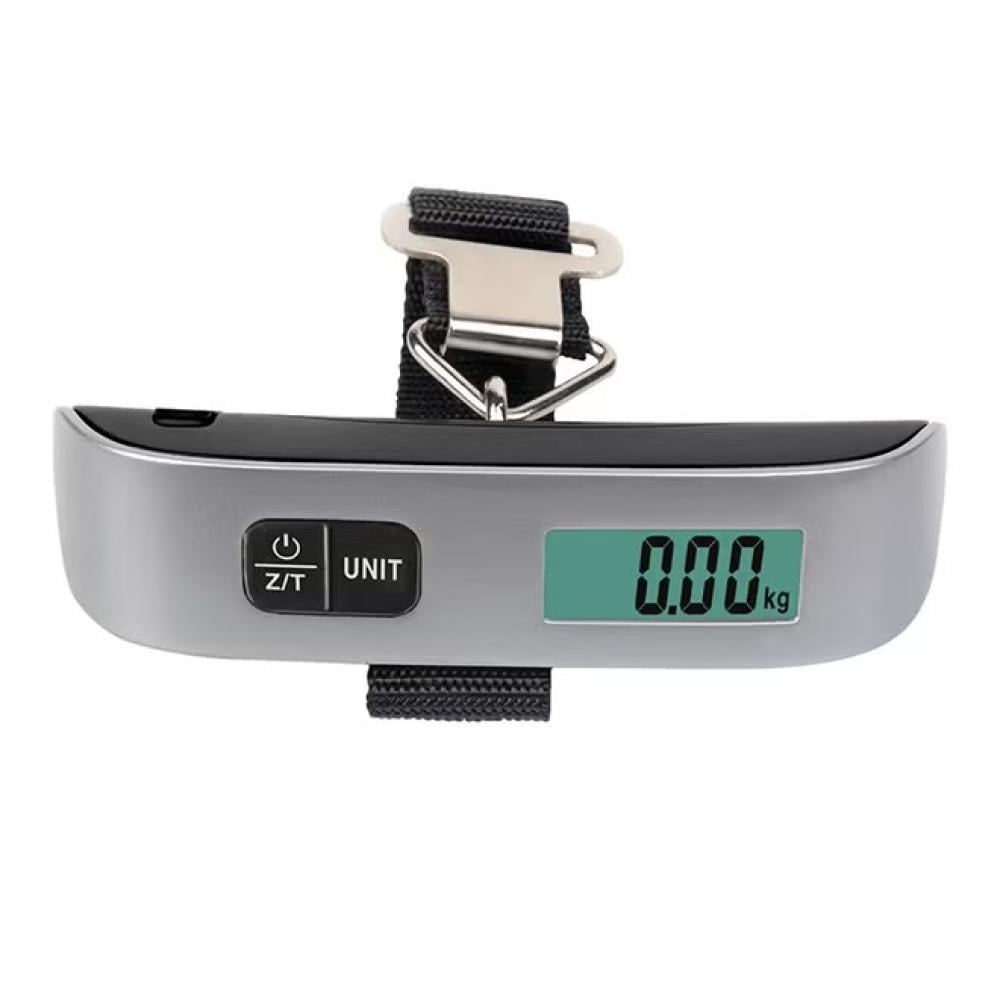 ميزان إلكتروني للحقائب بسعة 50 كجم – شاشة LCD، مؤشر حرارة، بطارية CR2032