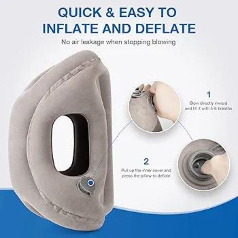 وسادة نوم للسفر قابلة للنفخ، ستجنبك آلام الرقبة والكتف وتخدير اليدين، وستدعم الرأس والظهر طوال رحلة النوم الطويلة.