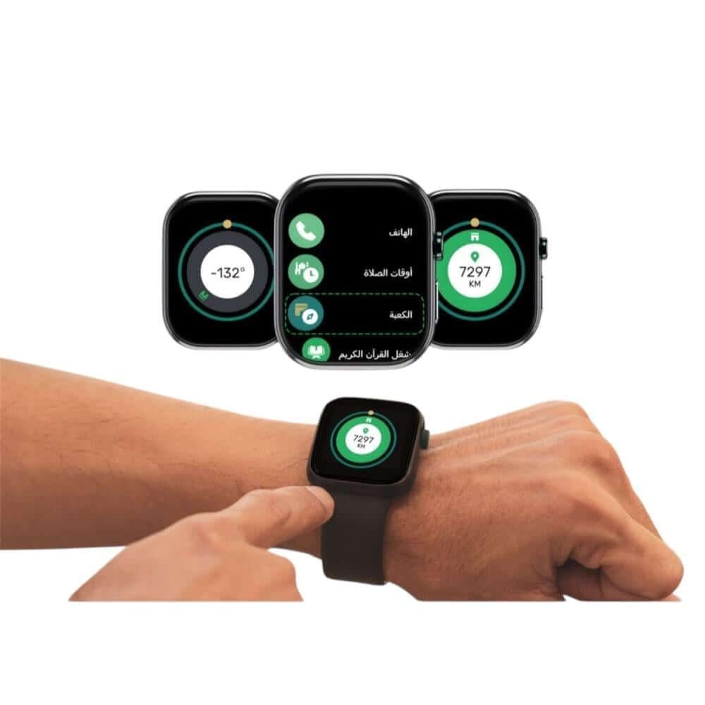 تنبيهات الصلاة، تشغيل القرآن، تحديد القبلة، مراقبة نبض القلب والنوم، وتوافق تام مع هاتفك الذكي – كل هذا في تصميم أنيق وعصري يدعم العربية ويمنحك تجربة فريدة في كل لحظة