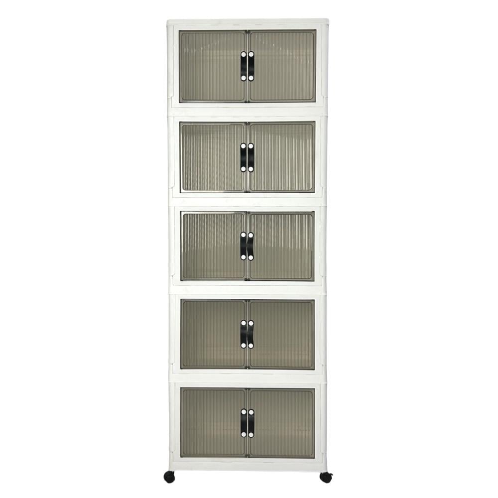 • كل خزانة من صناديق تخزين كبيرة تحتوي على بابين مصممين من مادة شفافة مجسمة مع مسكات جلدية.