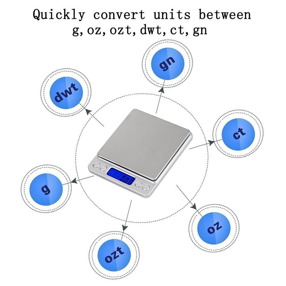 - 6 وحدات للوزن - g ، أوز ، أوز ، dwt ، ct ، gn ، يمكن تغييرها إلى وحدة مختلفة ما تريدينه