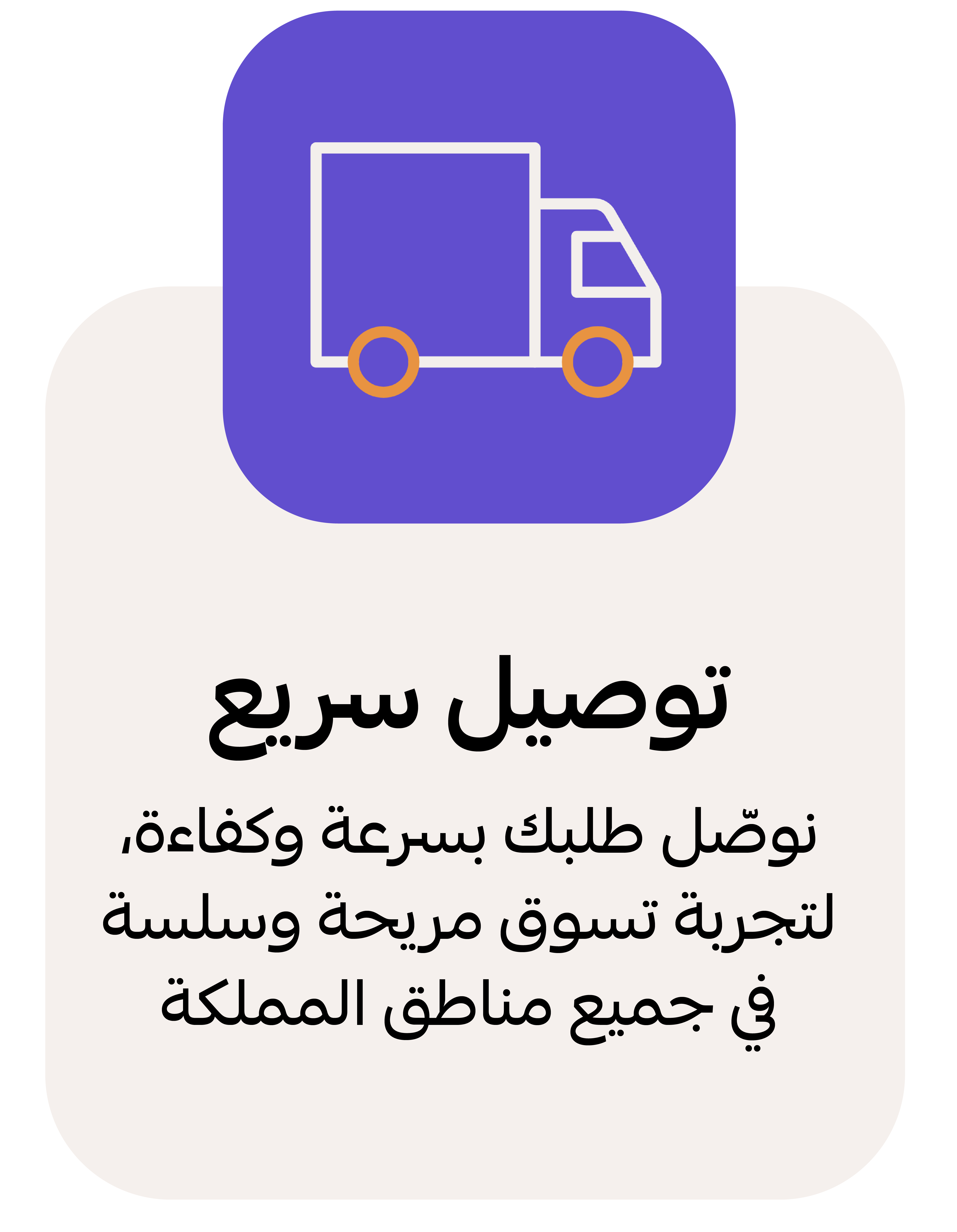 نوصّل طلبك بسرعة وكفاءة، لتجربة تسوق مريحة وسلسة في جميع مناطق المملكة.