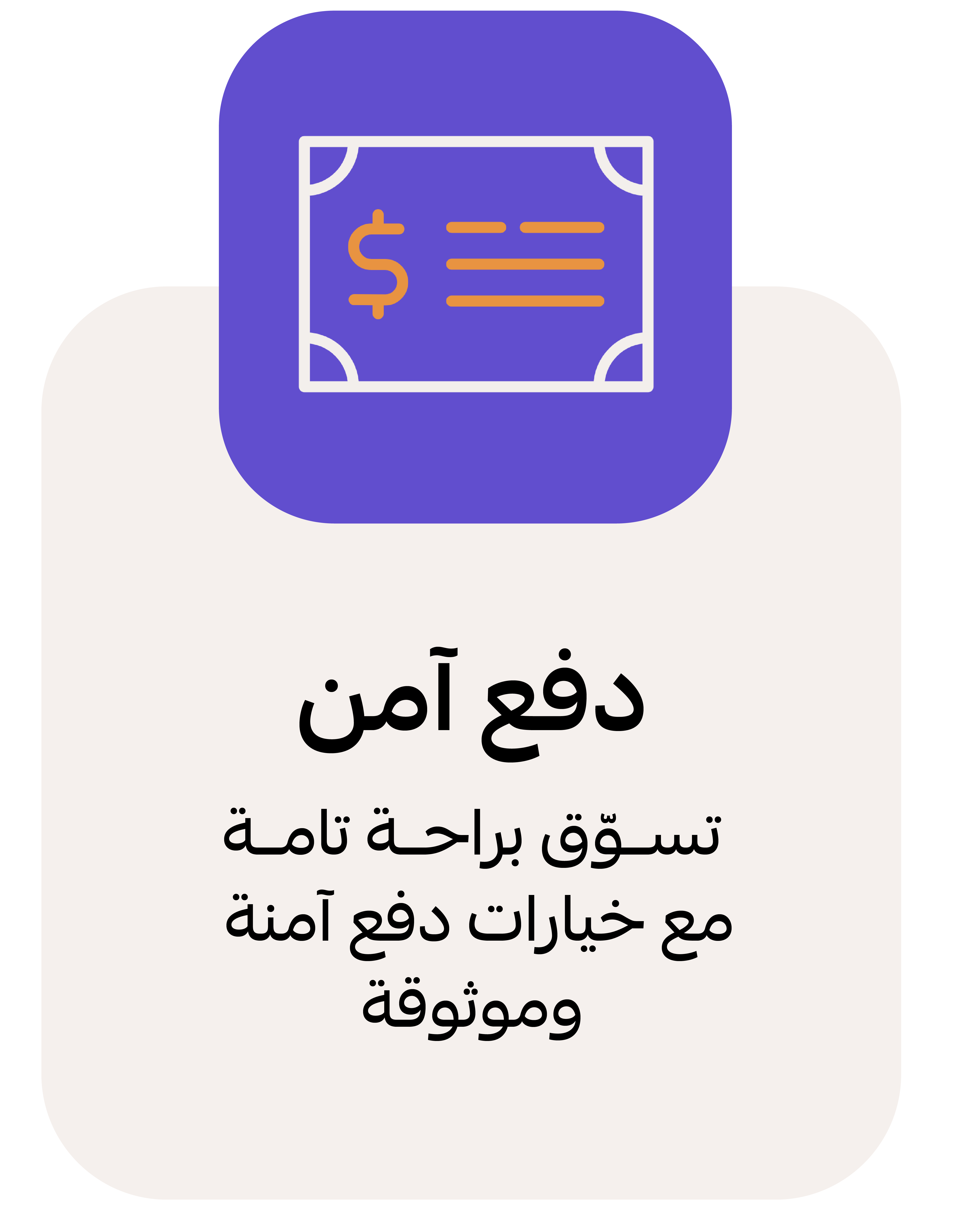 تسوّق براحة تامة مع خيارات دفع آمنة وموثوقة.